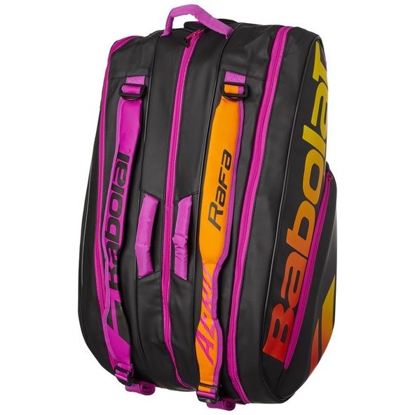 Túi Tennis Babolat Pure Aero Rafa X12 Pack phiên bản đặc biệt, theo tông vợt Pure Aero Rafa. Đây cũng chính là mẫu túi Rafael Nadal đang sử dụng cùng cây vợt với màu sắc độc nhất vô nhị.